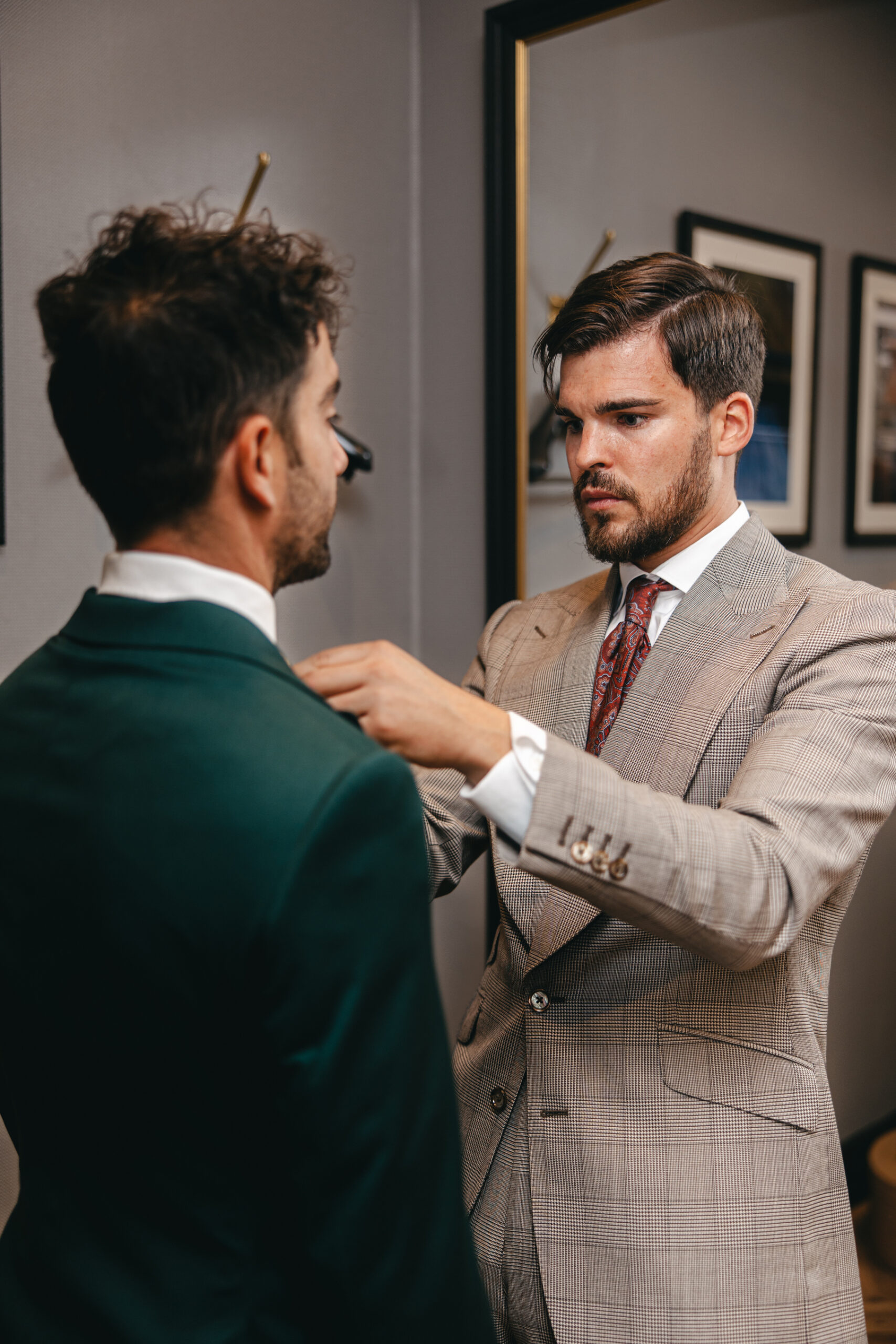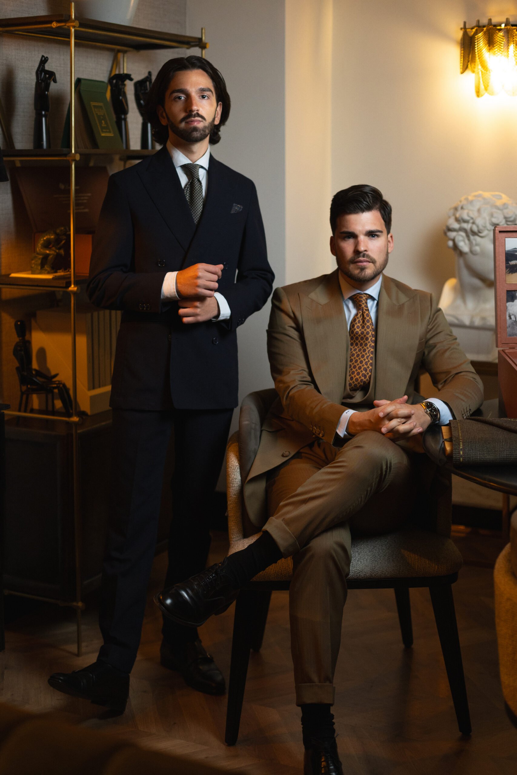 Completamos tu look de ceremonia con una exclusiva colección de accesorios: chalecos, camisas confeccionadas a medida, corbatas y pajaritas de seda, tirantes, pañuelos, cinturones de piel y calzado artesanal. Todo bajo una misma filosofía: la perfección en cada detalle.