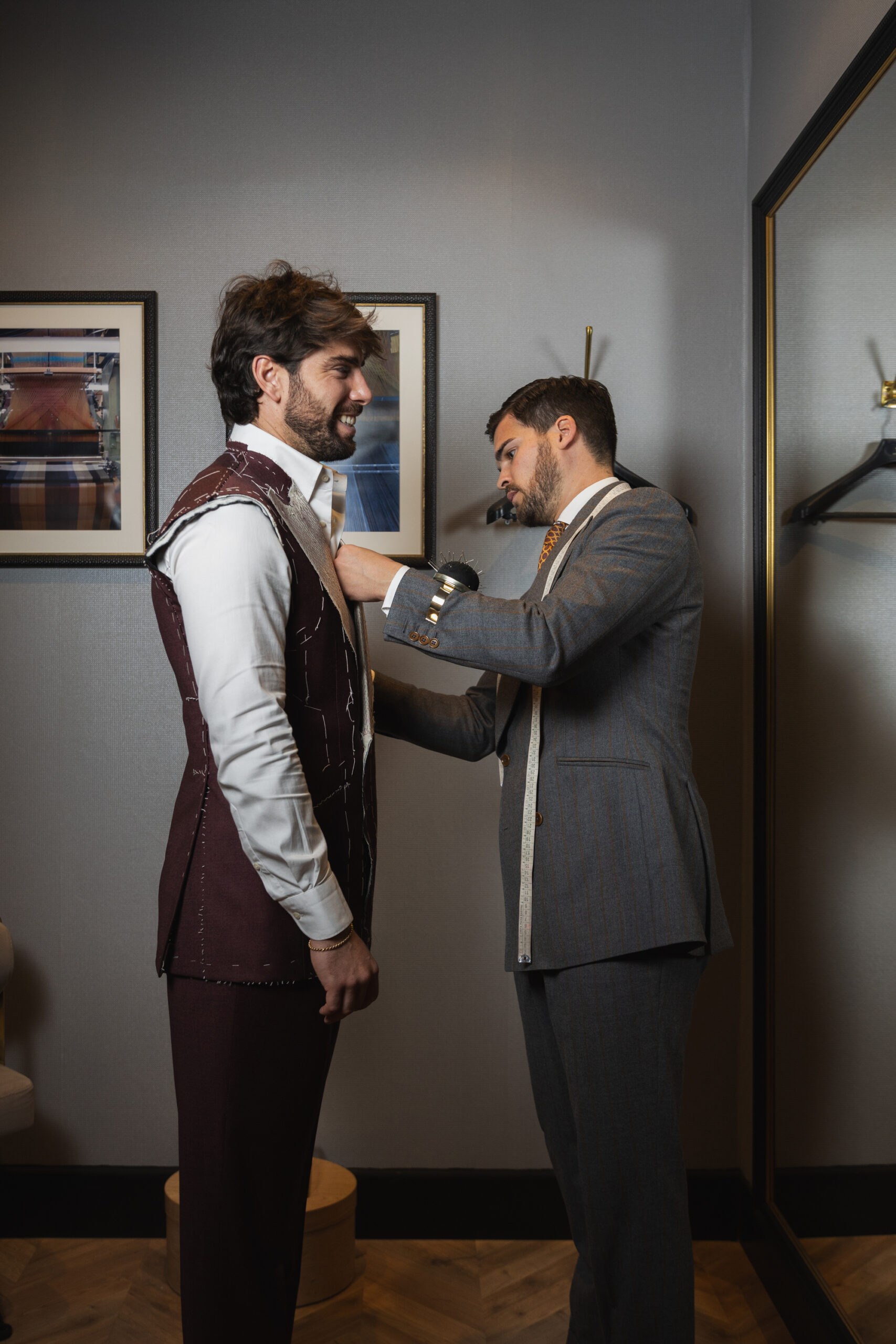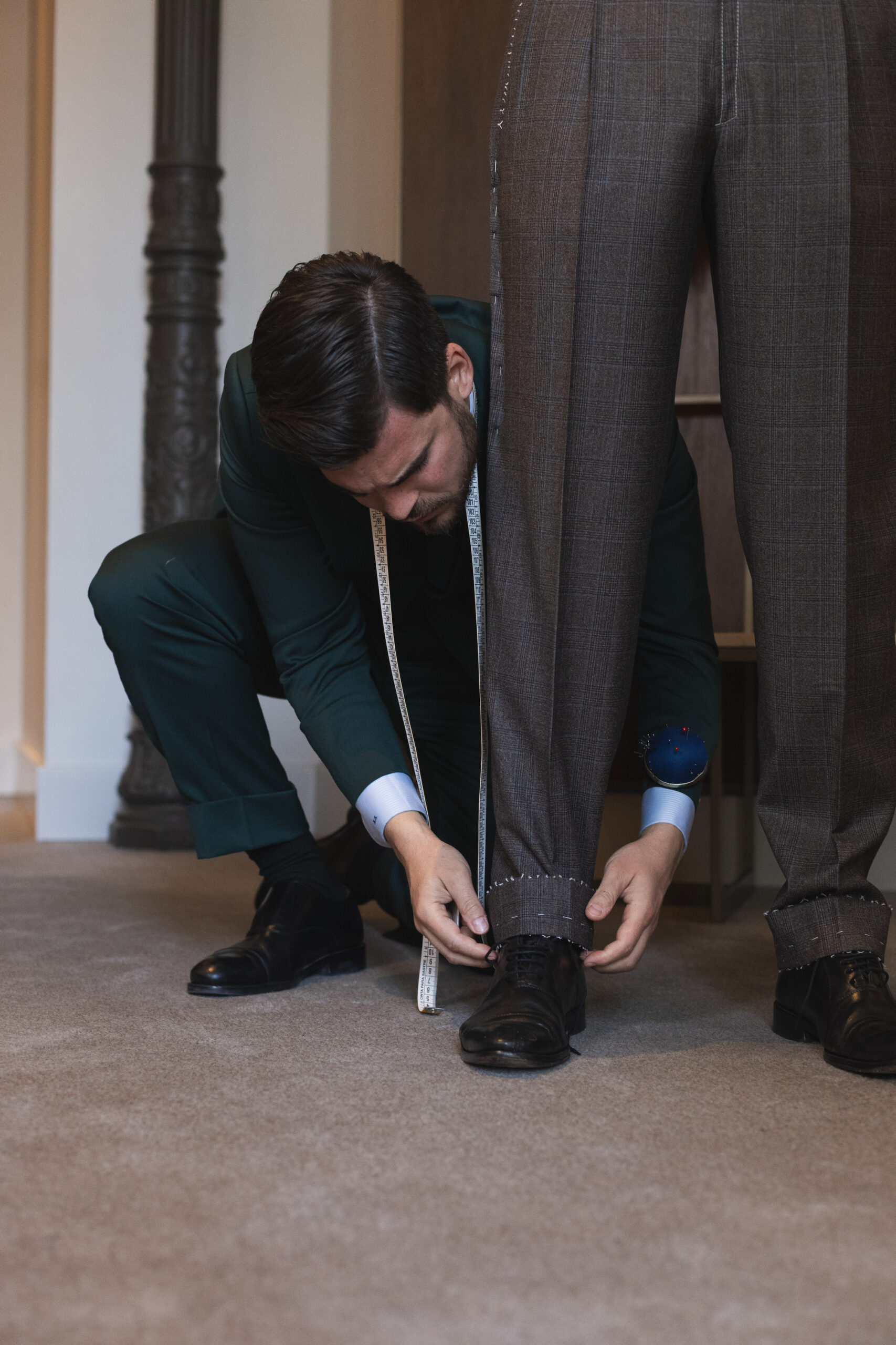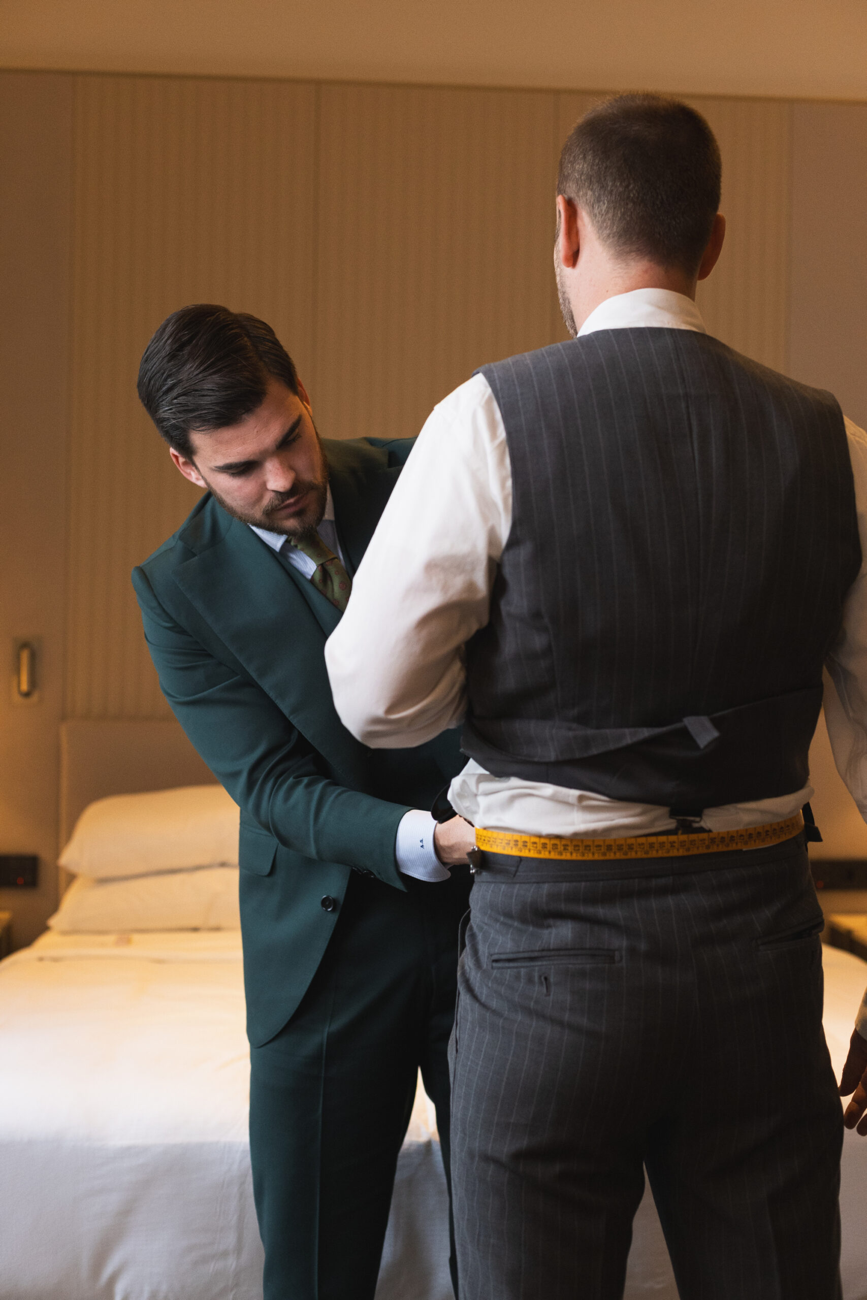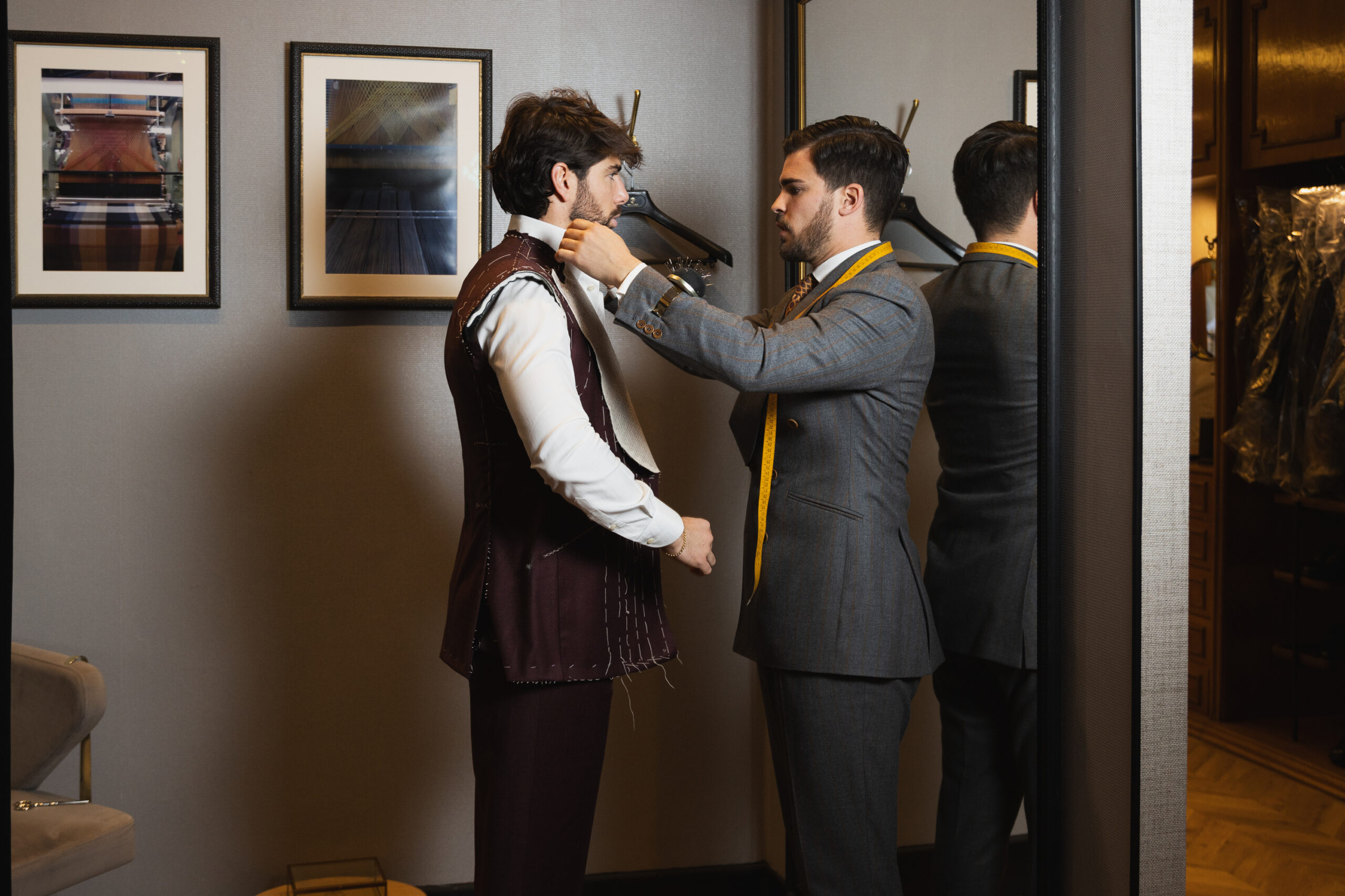 Cada traje es el resultado de un proceso artesanal meticuloso y absolutamente personalizado. Desde la elección de los tejidos hasta el último detalle de confección, todo se adapta a tu silueta, estilo personal y visión estética. Nuestro compromiso es que encuentres el traje de novio perfecto, no solo para vestir el día de tu boda, sino para expresar tu esencia con seguridad, desde la ceremonia hasta el último brindis.